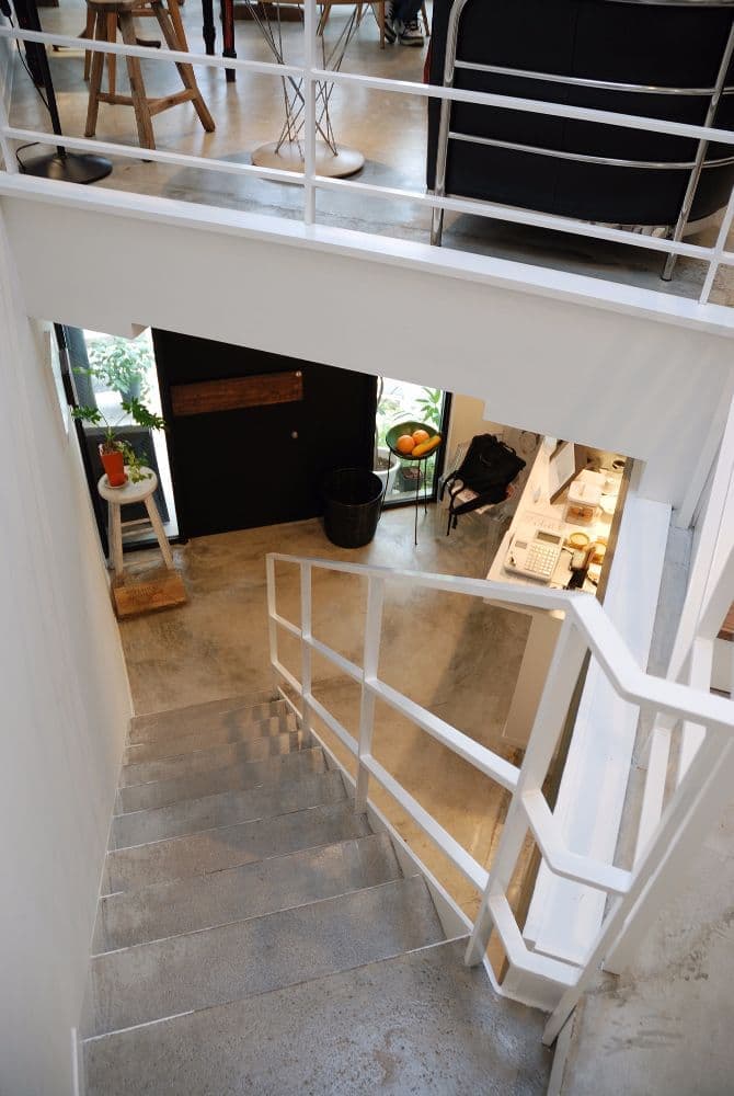 周囲の雑然とした雰囲気とは一線を画すように、カディは宙に浮かせた構造になっており、入り口に立つと中に吸い込まれるような、パースの効いたスキップフロアとしました。2階の客席は、外からは想像できない広さを感じさせます。