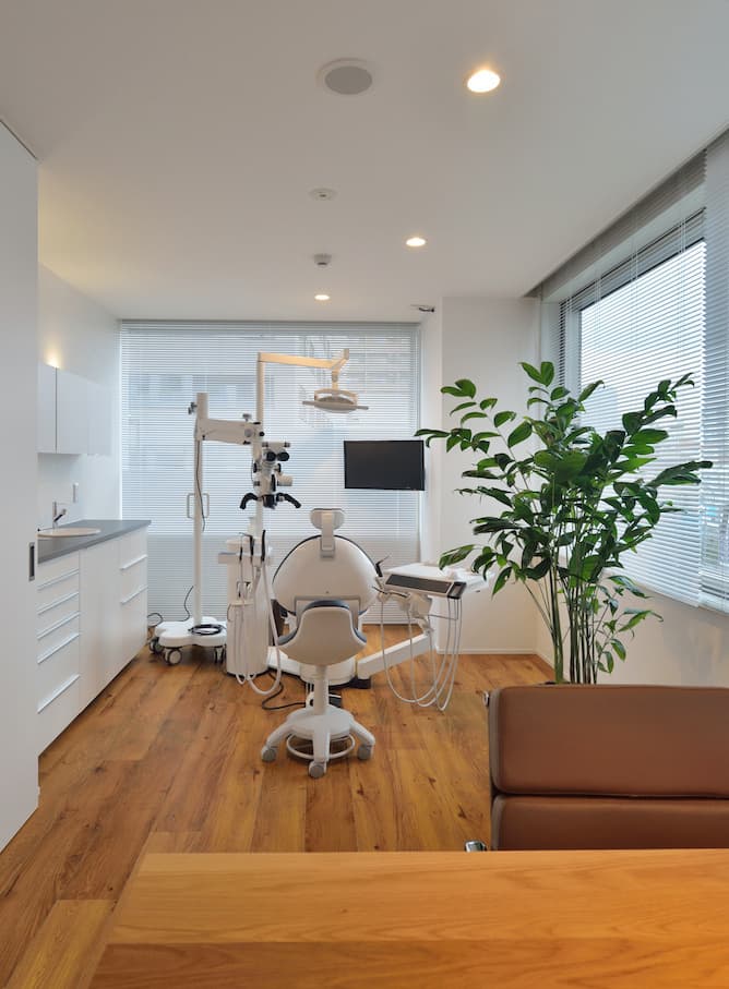 通常の歯科医院では、出来るだけユニット数を増やすために効率の良い配置が求められますが、ここでは患者様とのコミュニケーションを重視してあえてユニット数を抑えて、その分全体的にゆったりとした空間にしました。特に待合は人数の割にとても広く、サロンのように寛げるようデザインし、それが医院の大きな特徴にもなっています。