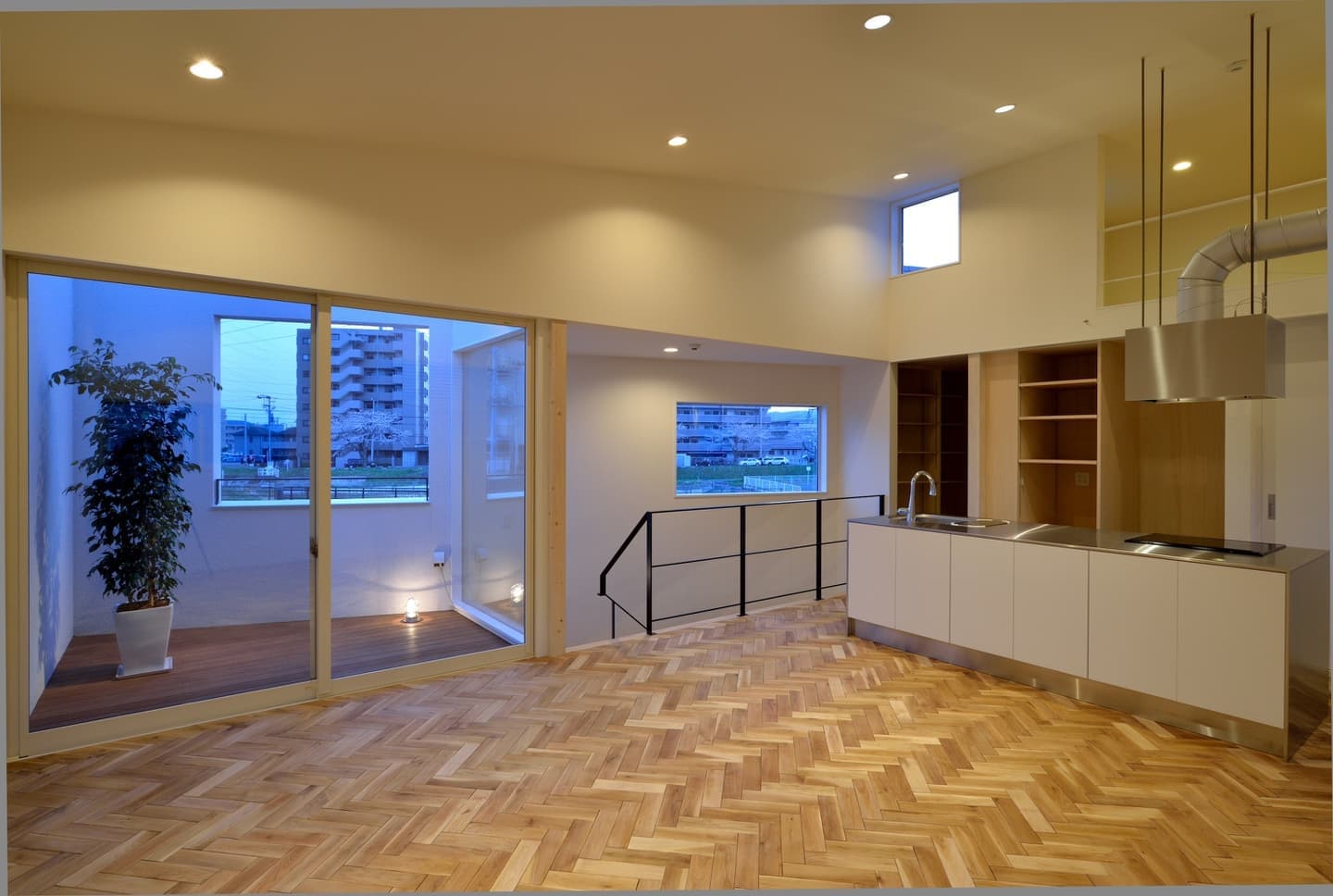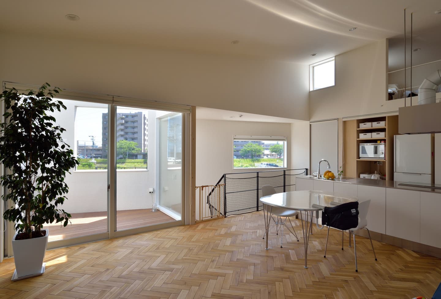 大きな幹線道路に面するため、外部との関係を考慮しながら適切な「間」を取ることで開放的な住空間を実現しました。