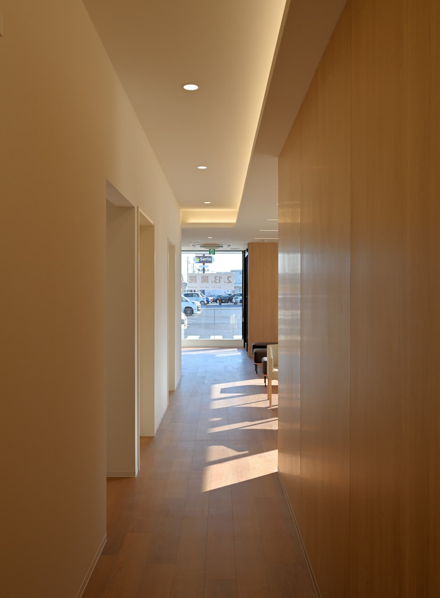 また、待合室には自然光と木質系のデザインを取り入れ、開放感のある穏やかな空間を計画。医療機能と心地よさの両立を図り、患者が不安を抱えずに過ごせるクリニックを目指しました。