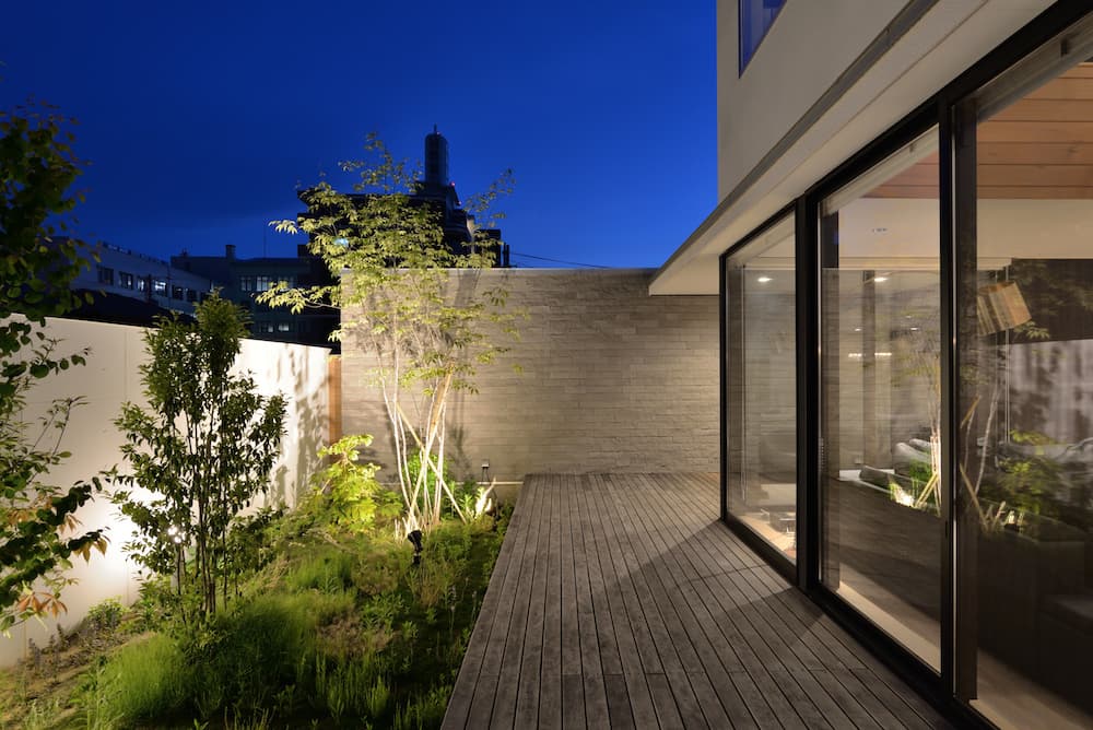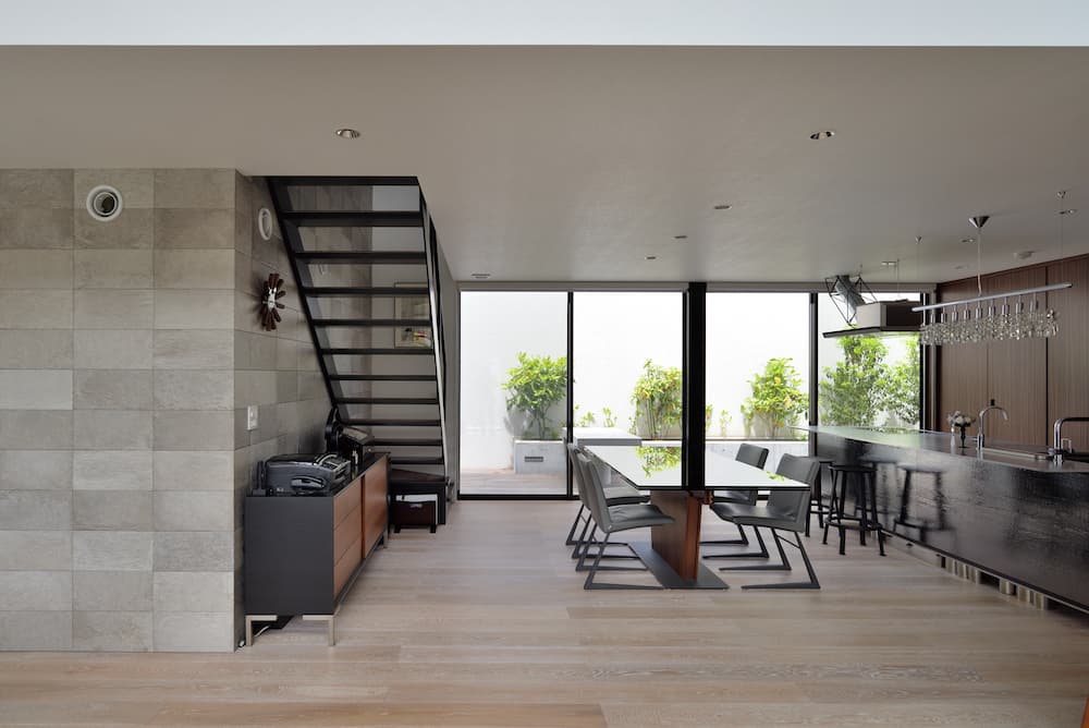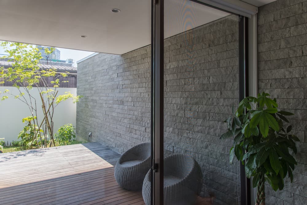 大きな開口で内外の境界を曖昧にすることで
