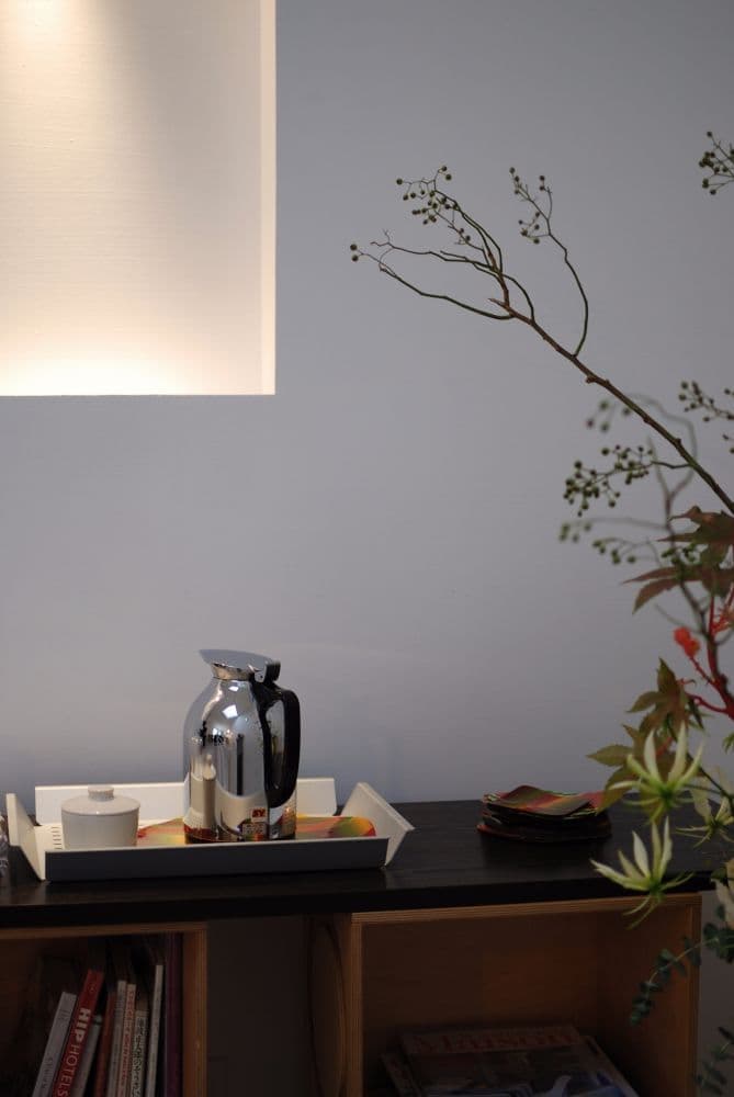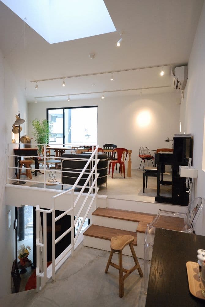 周囲の雑然とした雰囲気とは一線を画すように、カディは宙に浮かせた構造になっており、入り口に立つと中に吸い込まれるような、パースの効いたスキップフロアとしました。2階の客席は、外からは想像できない広さを感じさせます。