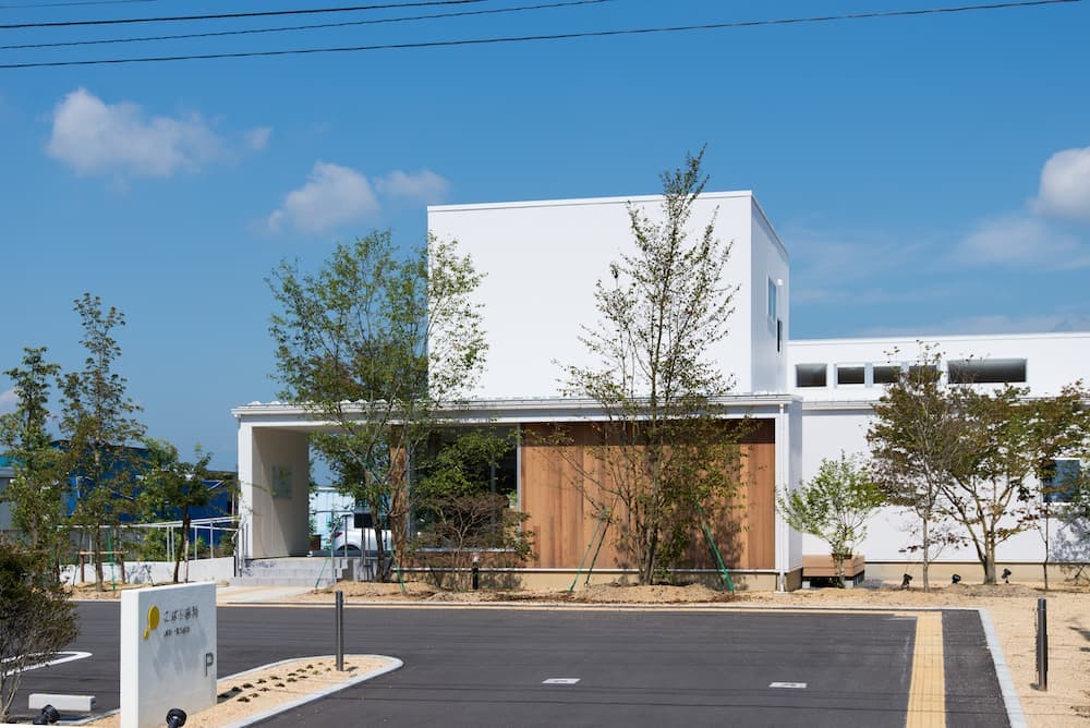 建物周囲はとても広々とした環境なので、待合室からは庭の木々を、診療室からは田園風景や遠くの山並みを望むことが出来るようになっています。外観は医院らしさを排除し、この地域で長く愛され続けるように周辺に無いようなシンボリックなデザインとしました。