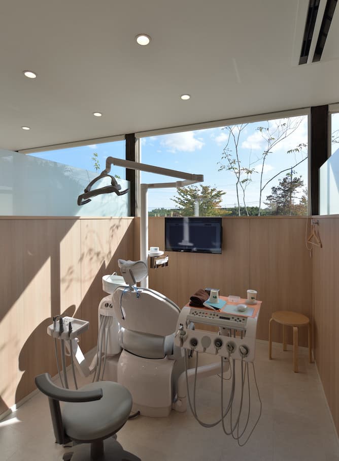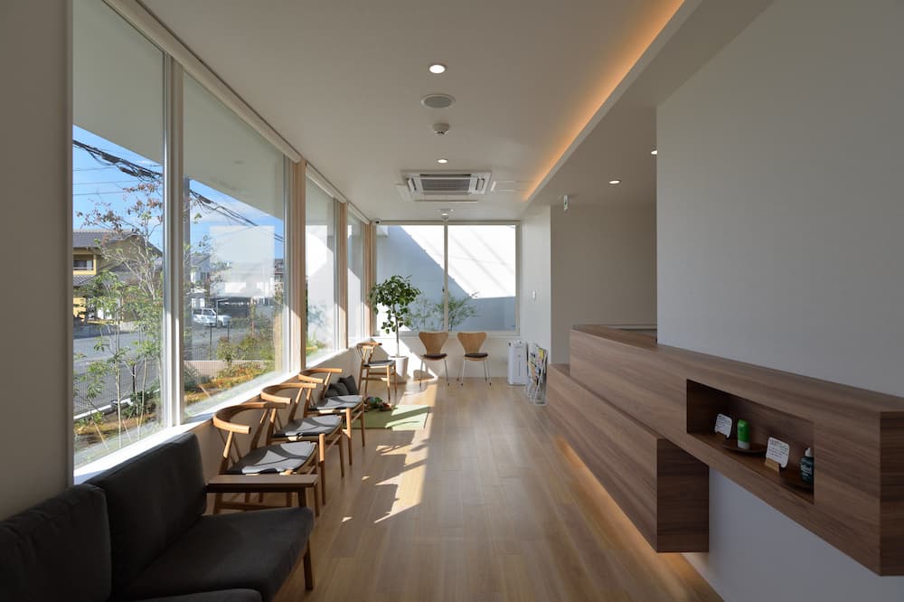 とは言え、あまり開放的すぎて外から丸見えでは来院者のプライバシーを守れませんので、いかに外からの視線をコントロールするかが本計画の鍵となります。そこで、道路との距離感や窓の位置、中庭を配置するなどして、院内どこにいても季節感のある植栽を眺められるように計画しました。