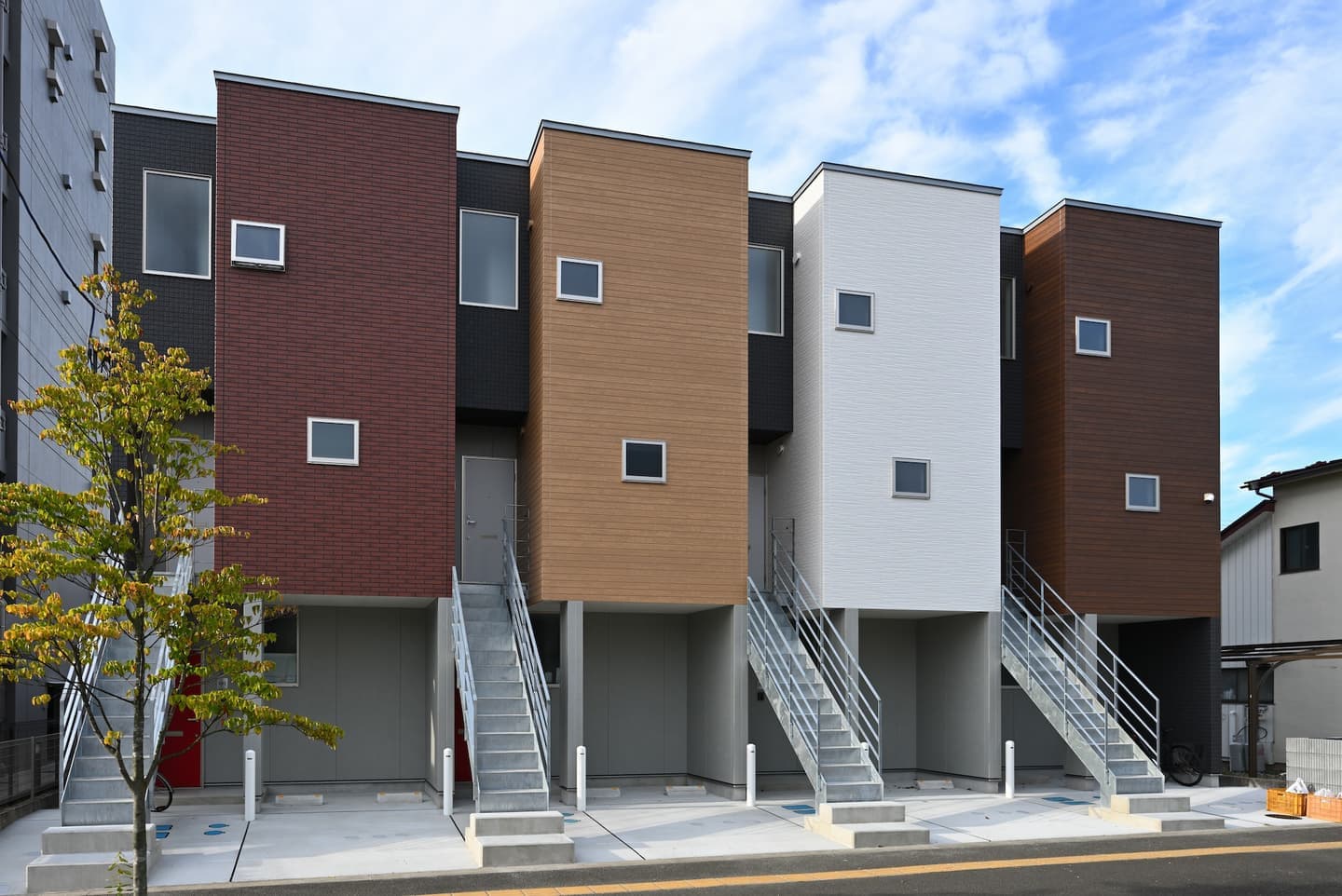長屋形式の戸建て感覚を外観にも表現 DATA 所在地:仙台市若林区大和町1丁目1−8用 途:集合住宅敷地面積:206.18㎡建築面積:123.52㎡延床面積:317.08㎡構 造:木造軸組工法、3階建て 完成までの記録 資料請求・お問い合わせはこちら