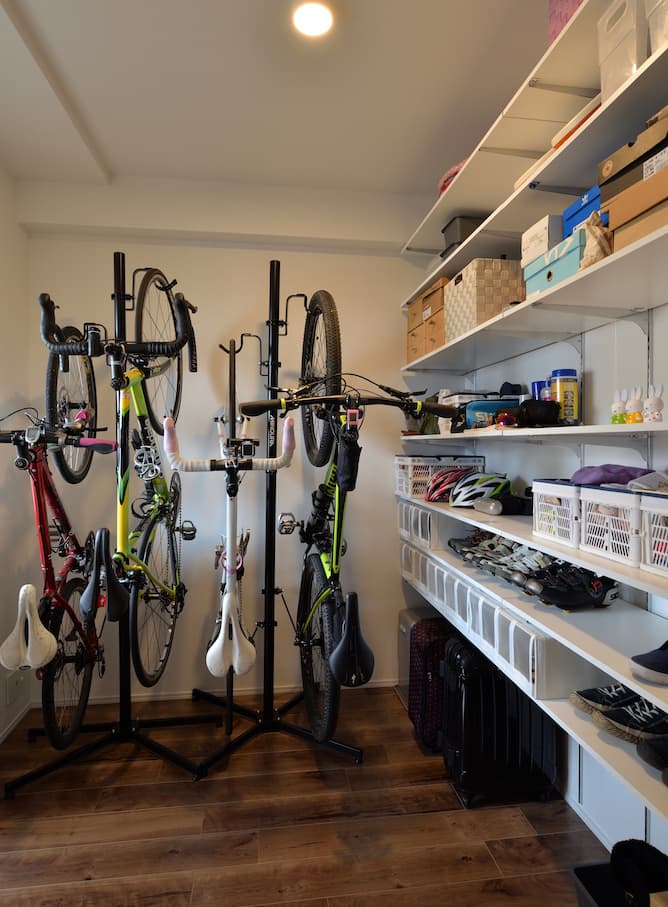 マンションの画一的な構成を自らのライフスタイルに合わせるために、ほぼスケルトンにして再構築しました。部屋数を減らした分、玄関収納を新たに設けて自転車を格納したり、キッチンをⅡ型にした上でパントリーを新たに設けるなど、メリハリをつけることで全体としてゆったりとした空間にすることができました。