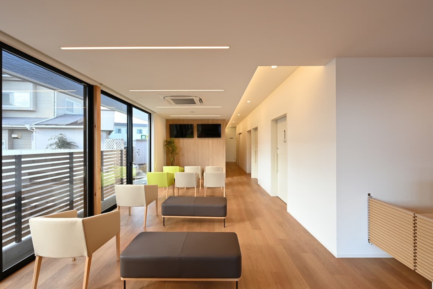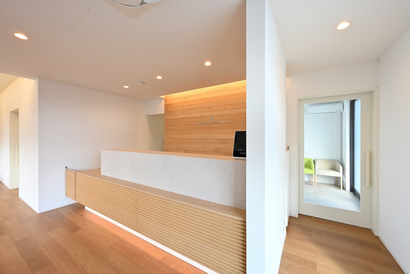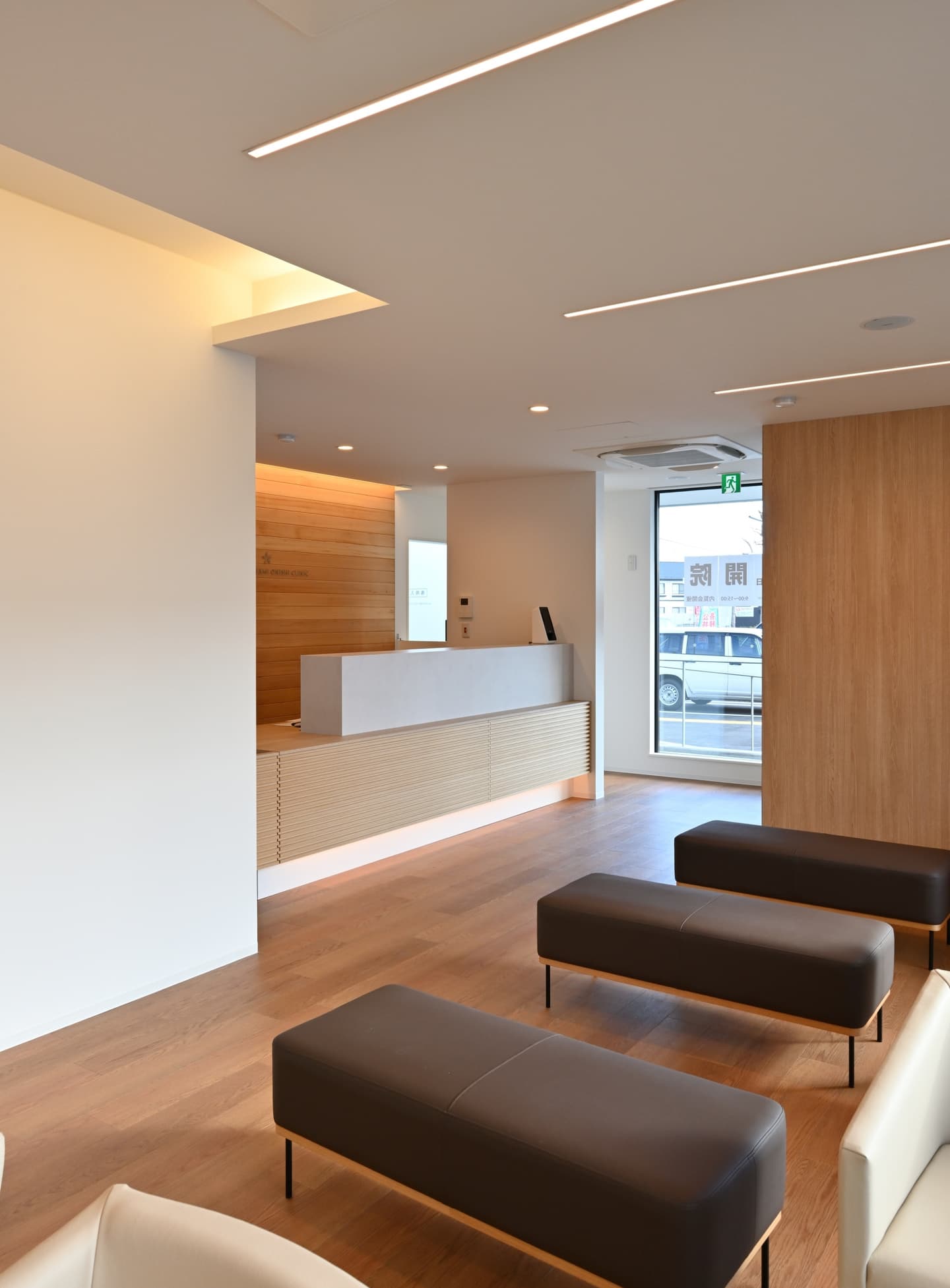また、待合室には自然光と木質系のデザインを取り入れ、開放感のある穏やかな空間を計画。医療機能と心地よさの両立を図り、患者が不安を抱えずに過ごせるクリニックを目指しました。