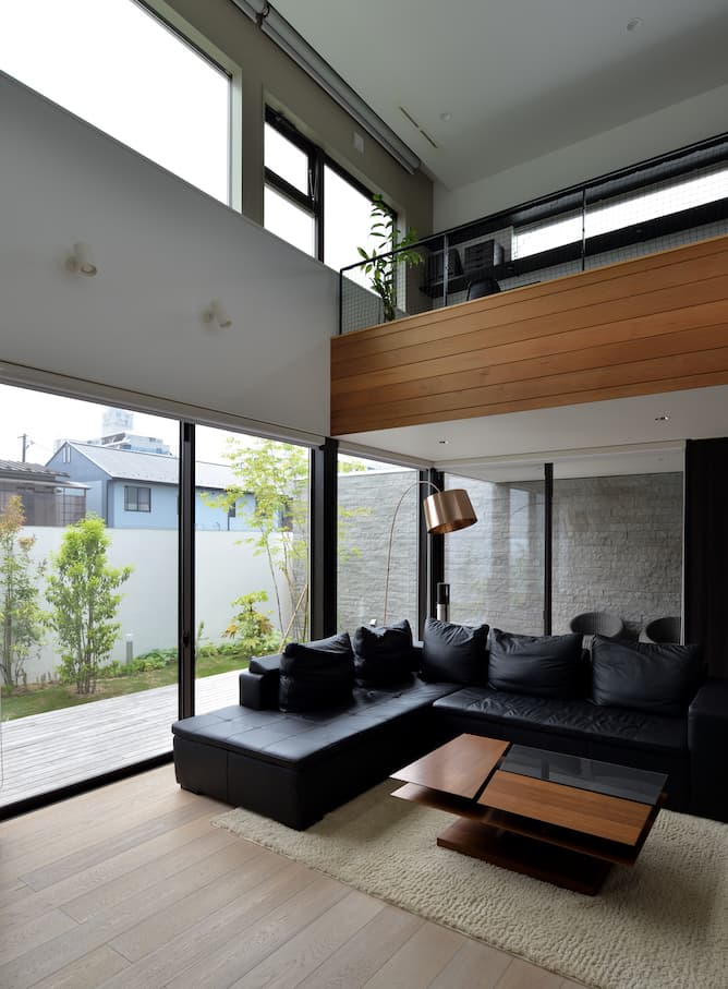大きな開口で内外の境界を曖昧にすることで