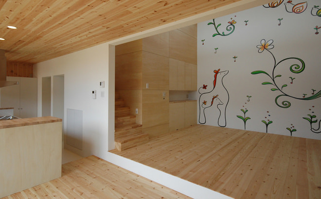 また、大きくてシンプルな壁画を空間の一部となるように配置することで、日々の暮らしに程よい色合いを添えています。